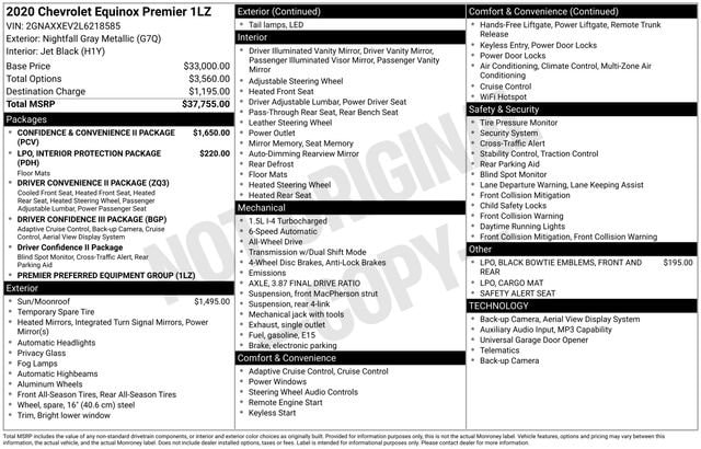 Discover the exceptional 2020 Chevrolet Equinox Premier, a versatile and well-equipped crossover SUV that's ready to elevate your driving experience. With its sleek Gray exterior, this Equinox boasts a refined and modern aesthetic that is sure to turn heads.