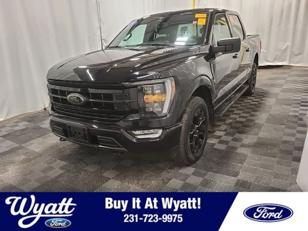 4WD, 10-Way Power Driver & Passenger Seats, 3.31 Axle Ratio, 4-Wheel Disc Brakes, 6 Speakers, 8" Productivity Screen in Instrument Cluster, ABS brakes, Accent-Color Step Bars, Air Conditioning, Alloy wheels, AM/FM radio, Auto High-beam Headlights, Auto-Dimming Rear-View Mirror, Black 2-Bar Style Grille w/Black Surround/Accents, Black 6" Angular Step Bars, Black Exterior Badging, Body-Color Door & Tailgate Handles, Body-Color Front & Rear Bumpers, Box Side Decals, Brake assist, Class IV Trailer Hitch Receiver, Compass, Dark Interior Appliques, Delay-off headlights, Driver door bin, Driver vanity mirror, Dual front impact airbags, Dual front side impact airbags, Dual Zone Electronic Automatic Temperature Control, Electronic Stability Control, Emergency communication system: SYNC 4 911 Assist, Equipment Group 302A High, Exterior Parking Camera Rear, Front anti-roll bar, Front Center Armrest w/Storage, Front fog lights, Front reading lights, Front wheel independent suspension, Fully automatic headlights, Heated door mirrors, Heated Front Seats, Illuminated entry, Integrated Trailer Brake Controller, Intelligent Access w/Push Button Start, Leather-Trimmed 40/Console/40 Front Seat, LED Reflector Headlamps, LED Sideview Mirror Spotlights, Low tire pressure warning, Matte Black Tailgate F-150 Decal, Occupant sensing airbag, Onboard 400W Outlet, Outside temperature display, Overhead airbag, Overhead console, Panic alarm, Passenger door bin, Passenger vanity mirror, Power door mirrors, Power Glass Heated Sideview Mirrors, Power steering, Power windows, Pro Trailer Backup Assist & Pro Trailer Hitch Assist, Radio data system, Radio: AM/FM SiriusXM w/360L, Radio: AM/FM Stereo w/6 Speakers, Rear reading lights, Rear step bumper, Rear Under-Seat Storage, Rear window defroster, Remote keyless entry, Remote Start System w/Remote Tailgate Release, SecuriCode Drivers Side Keyless-Entry Keypad, Security system, Speed control, Split folding rear seat, Steering wheel mounted audio controls, SYNC 4, SYNC 4 w/Enhanced Voice Recognition, Tachometer, Tilt steering wheel, Traction control, Trailer Tow Package, Trip computer, Unique Hood & Grille w/Black Accent, Variably intermittent wipers, Voltmeter, Wheels: 20" Gloss Black Painted Aluminum, Wrapped Steering Wheel, XLT Black Appearance Package, XLT Sport Appearance Package, Zone Lighting.
